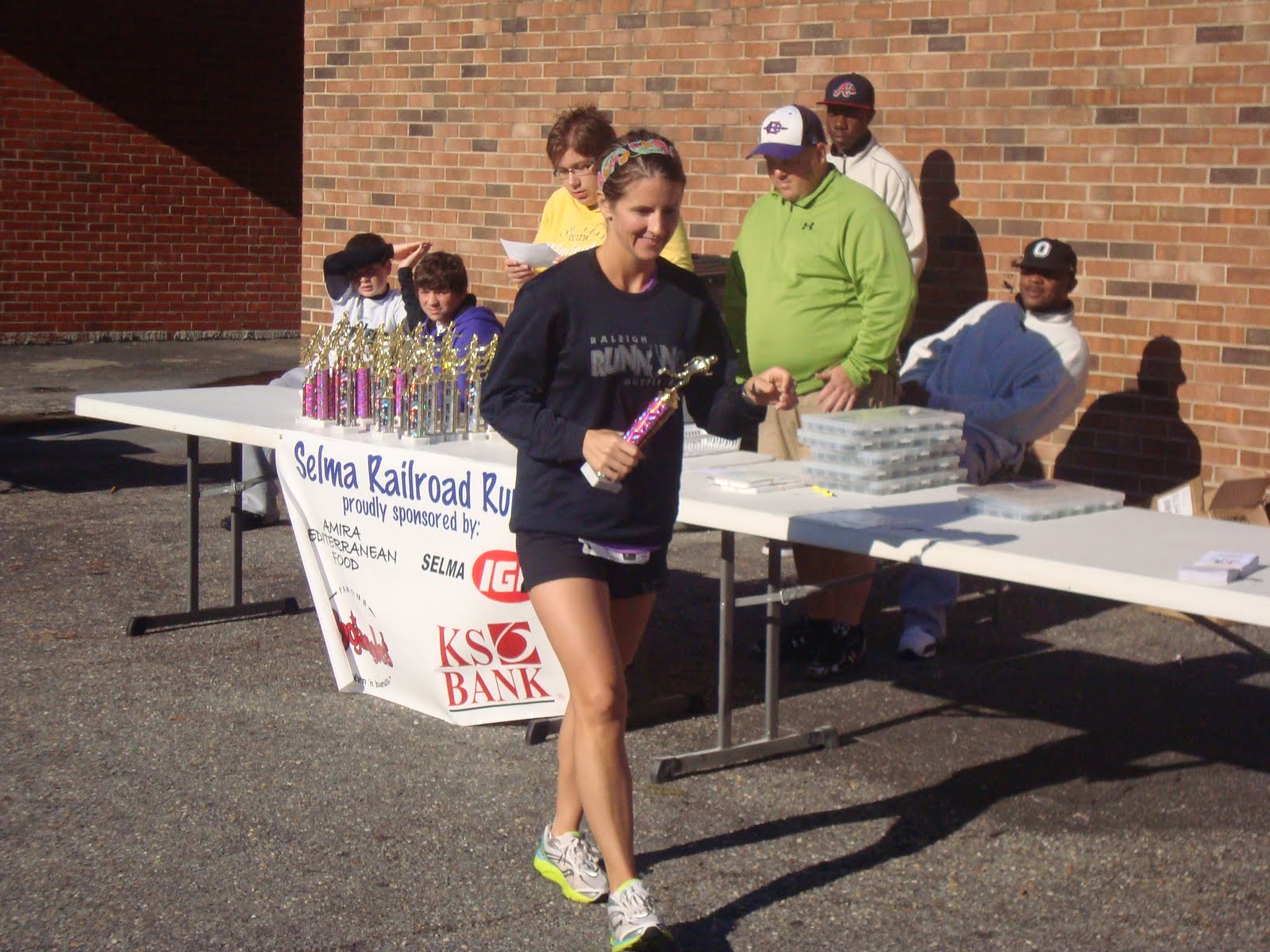 There was a good spread of post-race food and fluids for the runners, and they were able to give out the overall awards pretty quickly, although a timing snafu prevented them from doing the age-group awards right away. But I enjoyed the time catching up with the other runners, hearing about their training and performance, and planning for that party bus next year! I really enjoyed the Selma Railroad Run 5k, and it's definitely one to include if you're looking for a fast course!